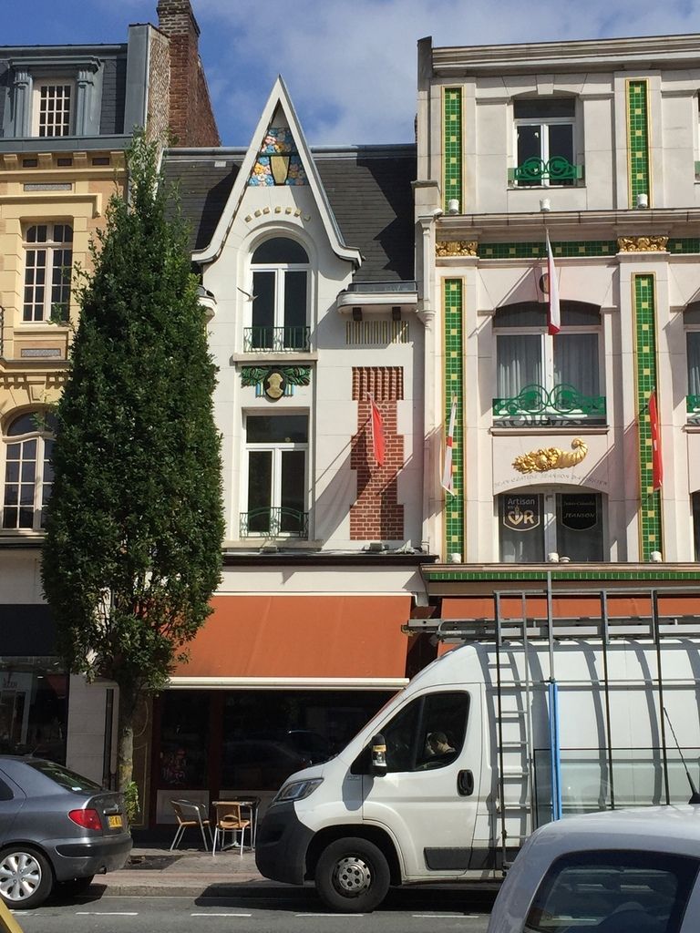 Avant d'aller au musée, nous prenons le temps de faire un petit tour de la ville (le centre est assez petit), le nez en l'air pour admirer les jolies façades dites régionalistes avec des pignons dits "à redents" ou à "pas de moineau".